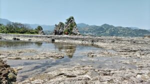フジツボが付いたゴツゴツした岩や、くぼみにたまった海水、そこにいる小魚やウニ。